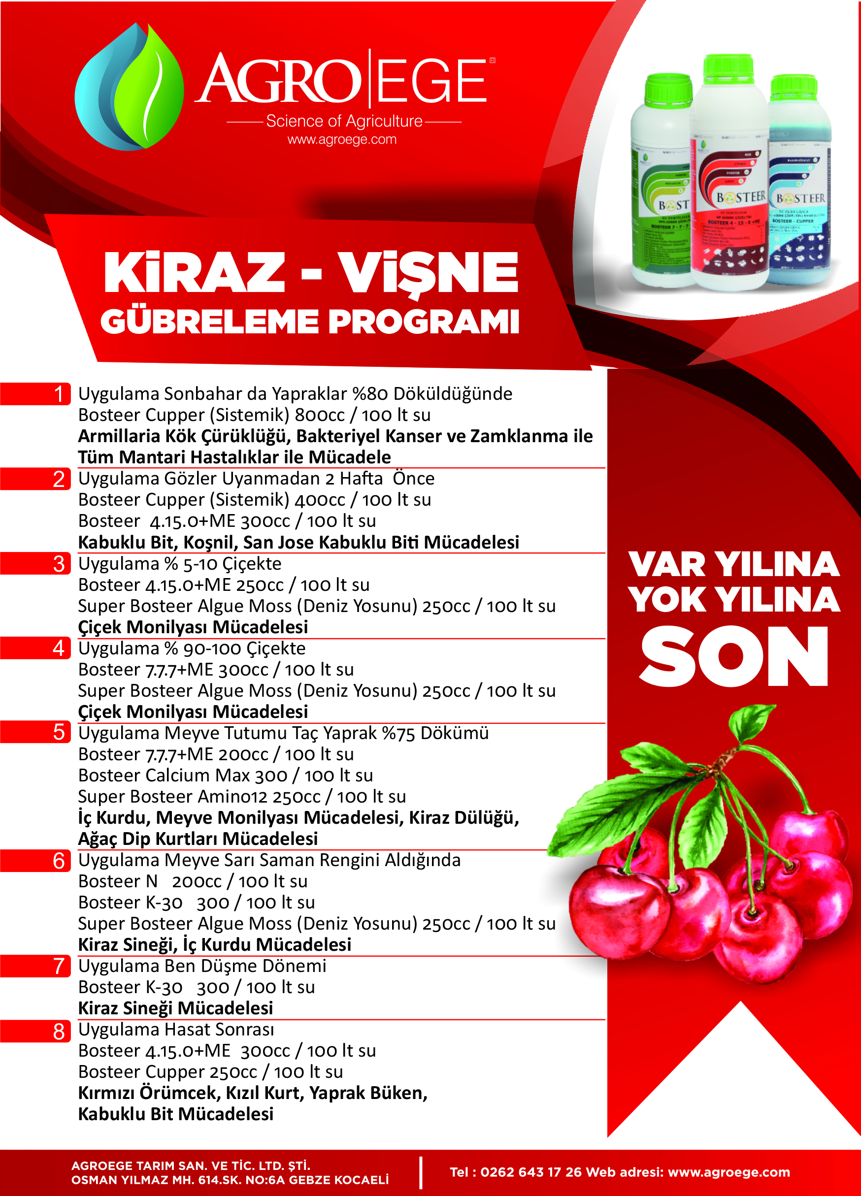 KİRAZ - VİŞNE GÜBRELEME PROGRAMI ÖNERİSİ
