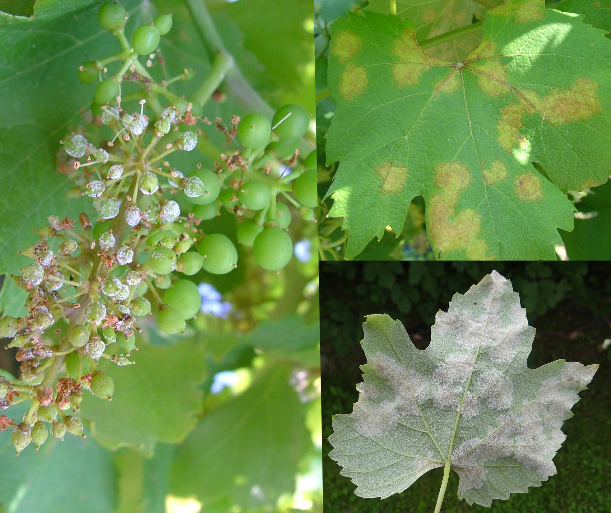 Enfekteli yapraklar çiçek ve tane enfeksiyonları açısından önemli inokulum kaynağıdır. Çiçekler ve taneler adeta fungusla örtülür (Şekil 1c,d). Enfekteli çiçekler kısa zamanda kahverengiye dönüşür, kuruyup dökülür (Şekil 1c). Taneler küçük iken çok duyarlıdır, olgunlaştıkça duyarlılık azalır. Enfekteli taneler beyaz çeşitlerde mat grimsi yeşil, siyah çeşitlerde pembemsi kırmızıya döner. Sürgünler üzerinde eliptik lekeler meydana gelir. Hastalık şiddetli ise sürgünler kurur. Mildiyö hastalığı asmanın tüm yeşil kısımlarını ve ürünü doğrudan etkilediği için ekonomik önemi büyüktür.