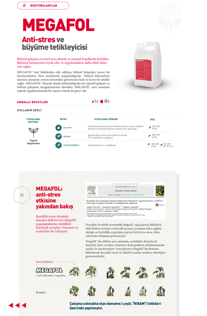 MEGAFOL® yaprak uygulamalarında da ürünlerin taşıyıcısı konumundadır.